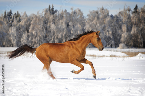 chestnut horse in winter plays | 500 | 333 | |