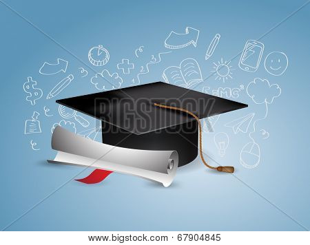 Black Graduation Cap with Degree - with doodles | 450 | 356 | |