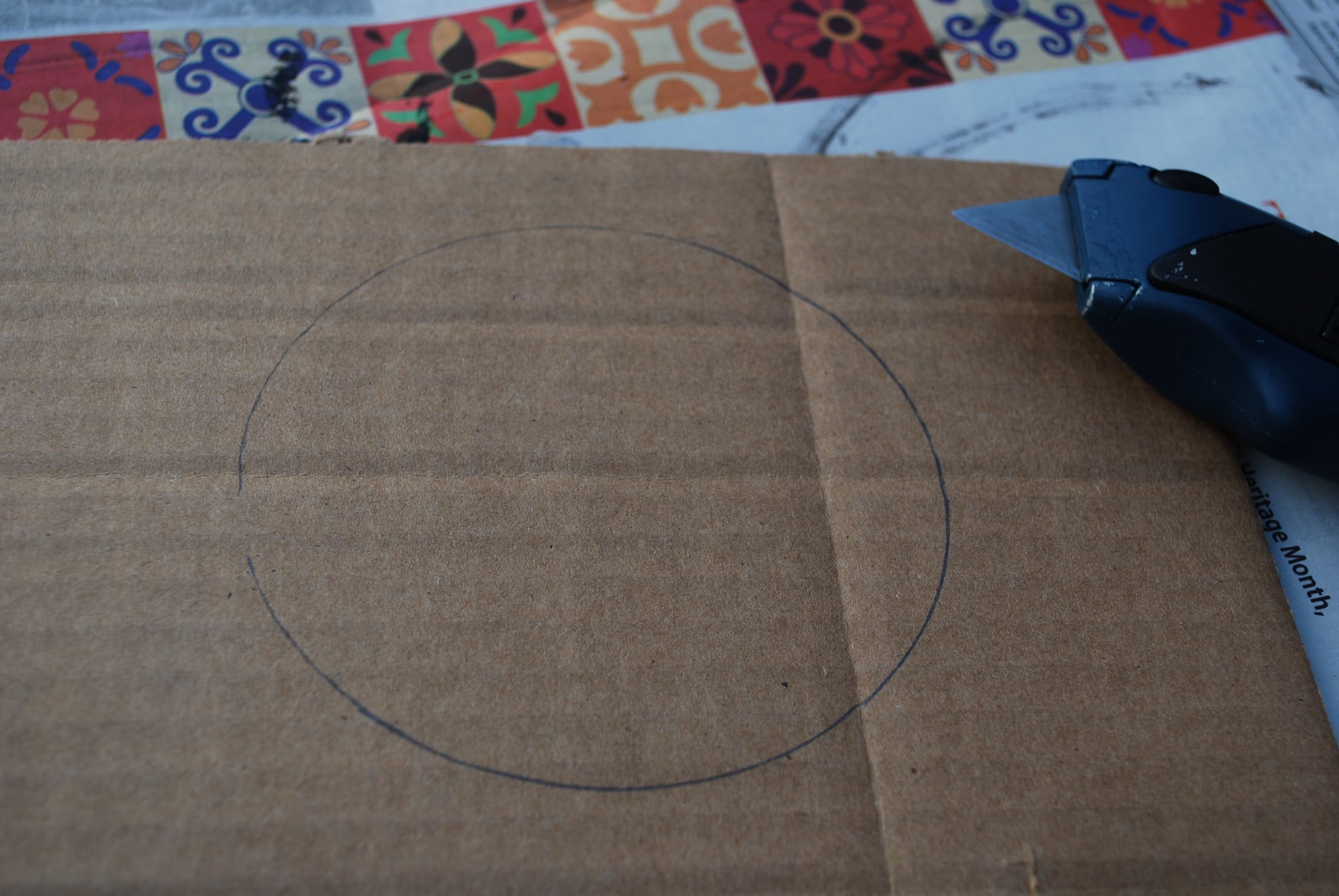 Using a spare piece of cardboard, cut a small circle (about six inches in diameter). | 2,048 | 1,371 |